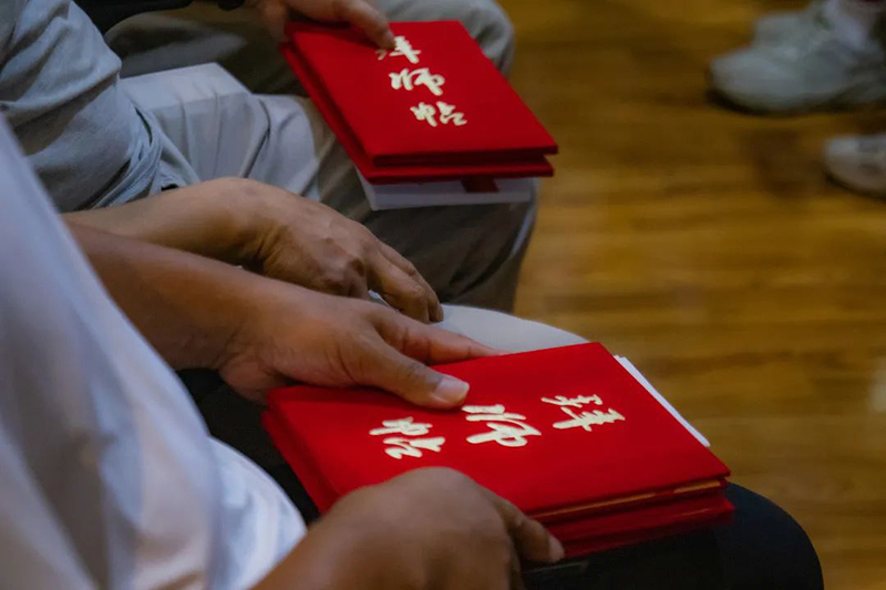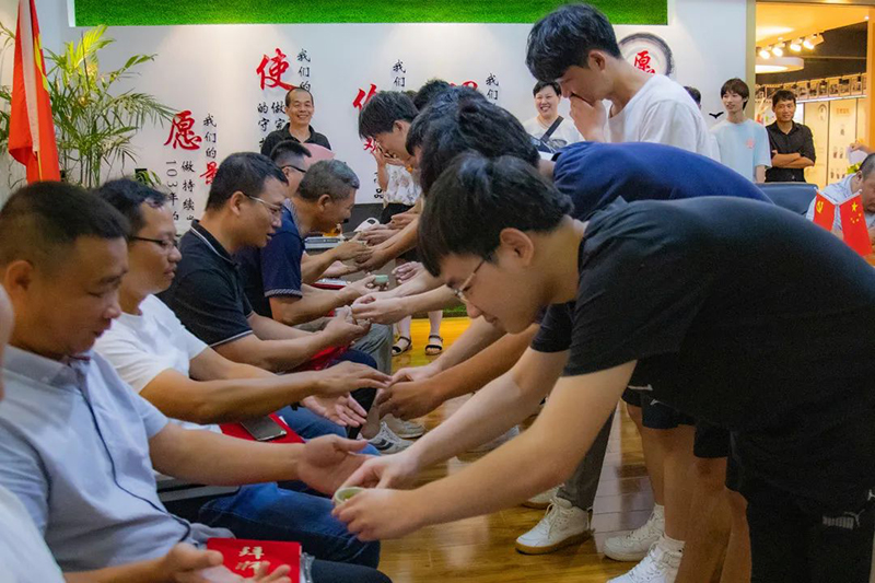 拜师仪式包含敬坐、诵读拜师帖、呈递拜师帖、行拜师礼、敬茶、聆讯、师傅回赠回徒七个环节。在拜师仪式的基础上,项目师傅们给徒弟们下发《实习指导手册》,提明要求,给足支持,制定学习目标、学习内容与明细。
