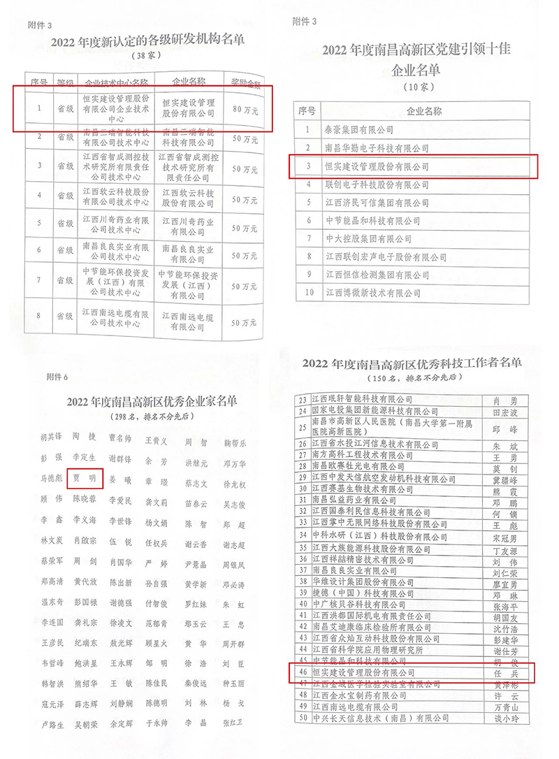近年来,恒实股份坚持党建引领,双促双赢,在高新区政府的支持和关怀下,加快企业转型升级,加大科技研发投入,成为院士工作站入驻企业、国家高新技术企业、省市双龙头服务业企业、省“专精特新”中小企业、省科技型中小企业、南昌市科技小区人企业,致力提供智慧全过程工程咨询服务,践行做完美工程的守护者。