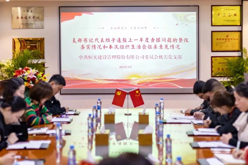 为深入贯彻党的二十大精神,坚定不移用习近平新时代中国特色社会主义思想,凝心聚力,提升党员党性修养,3月21日,根据中共中央组织部及上级党组织要求,中共恒实建设管理股份有限公司委员会机关党支部组织召开2022年度组织生活会。恒实股份党委书记殷春平、党委委员汪德坤、余小林、秦川到会指导。