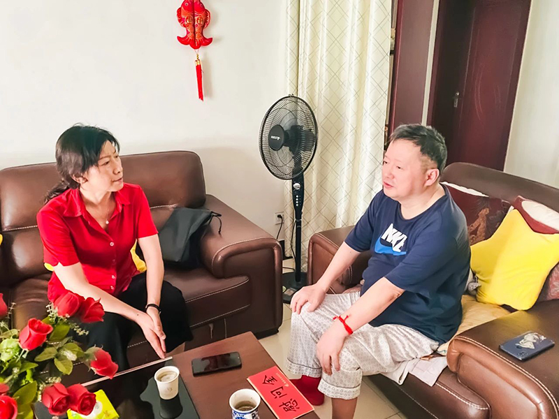 殷书记与余东鸣亲切交谈,悉心询问余东鸣同志身体和生活情况。“最近身体怎么样啊?”“要心态积极乐观,加强锻炼,好好保养。”一句句简单的话语温暖了余东鸣同志的心,让他备受感动,立刻说道:“我一定会积极配合治疗,乐观积极勇敢的应对病情,不辜负组织、不辜负领导的关心。”殷书记也反复叮嘱他保重身体,如有问题和困难及时和组织反映,党组织将尽最大的努力帮助解决。