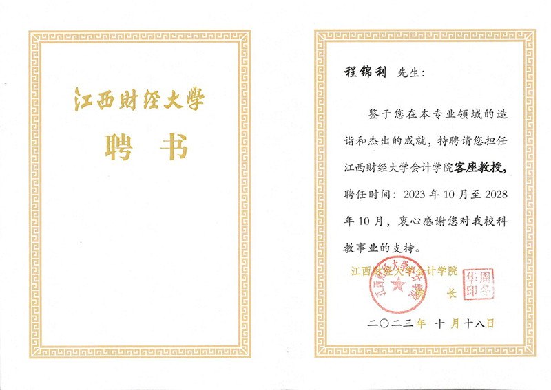 大会期间举办了江西财经大学会计学院客座教授礼聘仪式,公司财务总监程锦利被聘为江西财经大学会计学院客座教授。