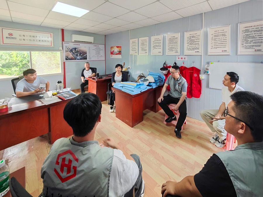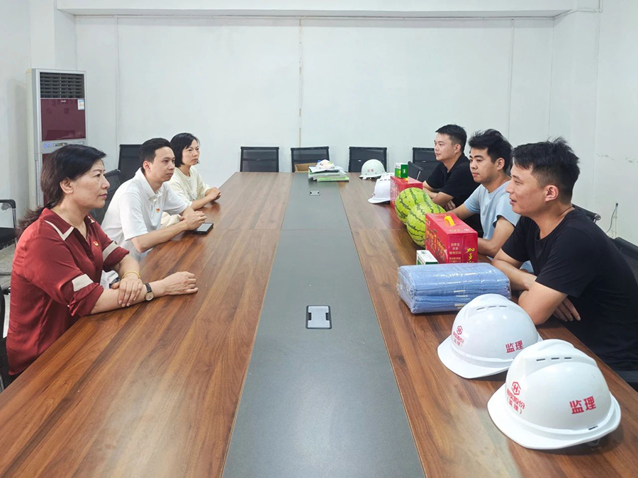 “大家辛苦了,一定要注意防暑降温,保重身体!”一句句贴心的话语,如同清凉的微风拂过心田,让项目一线人员都感受到了公司的温暖与关怀。近日,公司党委书记殷春平代表董事长贾明和总经理李曦来到多个项目一线为项目人员送上防暑降温物资,对项目一线人员的辛勤付出和坚守表示慰问和感谢,叮嘱大家在高温下工作要注意防暑,树牢安全防范意识,增强防护能力,保障自身安全,切实将安全生产放在首位。殷书记与大家亲切交谈,她表示在当前行业发展形势极其严峻的大环境下,要坚定发展信心,紧跟公司发展步伐,努力做好本职工作,笃行实干,不断提升个人技能和价值,创新思路,主动作为,为业主提供高质量有价值的智能建造服务,做完美工程的守护者。