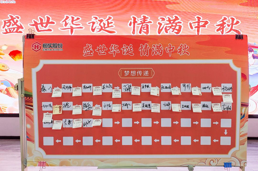 一年月色最明夜,同心共贺家国安。此次活动让大家在欢庆佳节的同时,更加深入地了解和体验了中华传统文化的魅力,进一步增强了全体恒实家人的归属感,强化了恒实股份党组织的凝聚力,激发了大家爱国、爱党、爱企、爱家的真挚情怀!值此中秋、国庆双节来临之际,祝愿全体恒实家人节日快乐,阖家团圆!祝愿伟大祖国繁荣昌盛,国泰民安!