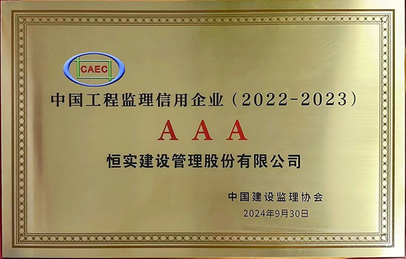 “AAA级”信用评价是工程监理行业最高等级信用评级,这一殊荣是行业协会对公司长期以来在坚持企业诚信经营、工程项目优质履约和积极履行社会责任等方面所作努力的充分肯定,也是对公司发展的鼓励和鞭策。