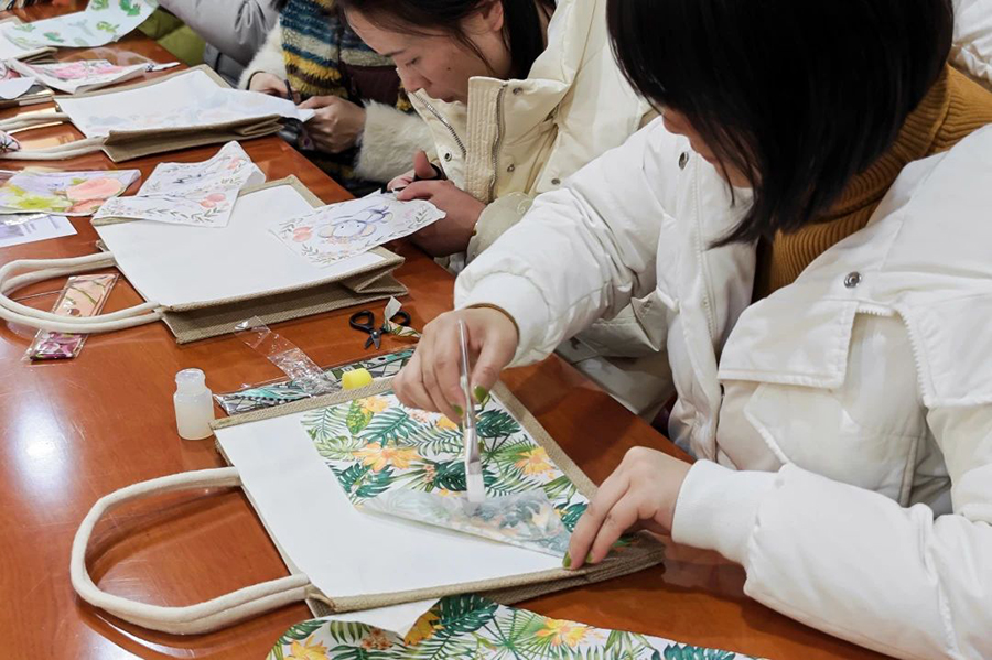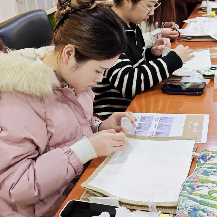 活动现场各位女神互相交流经验,分享心得,在制作过程中大胆发挥想象,不拘泥于传统样式,将自己的个性与创意融入到作品中,让每一个手工包都成为独一无二的存在。