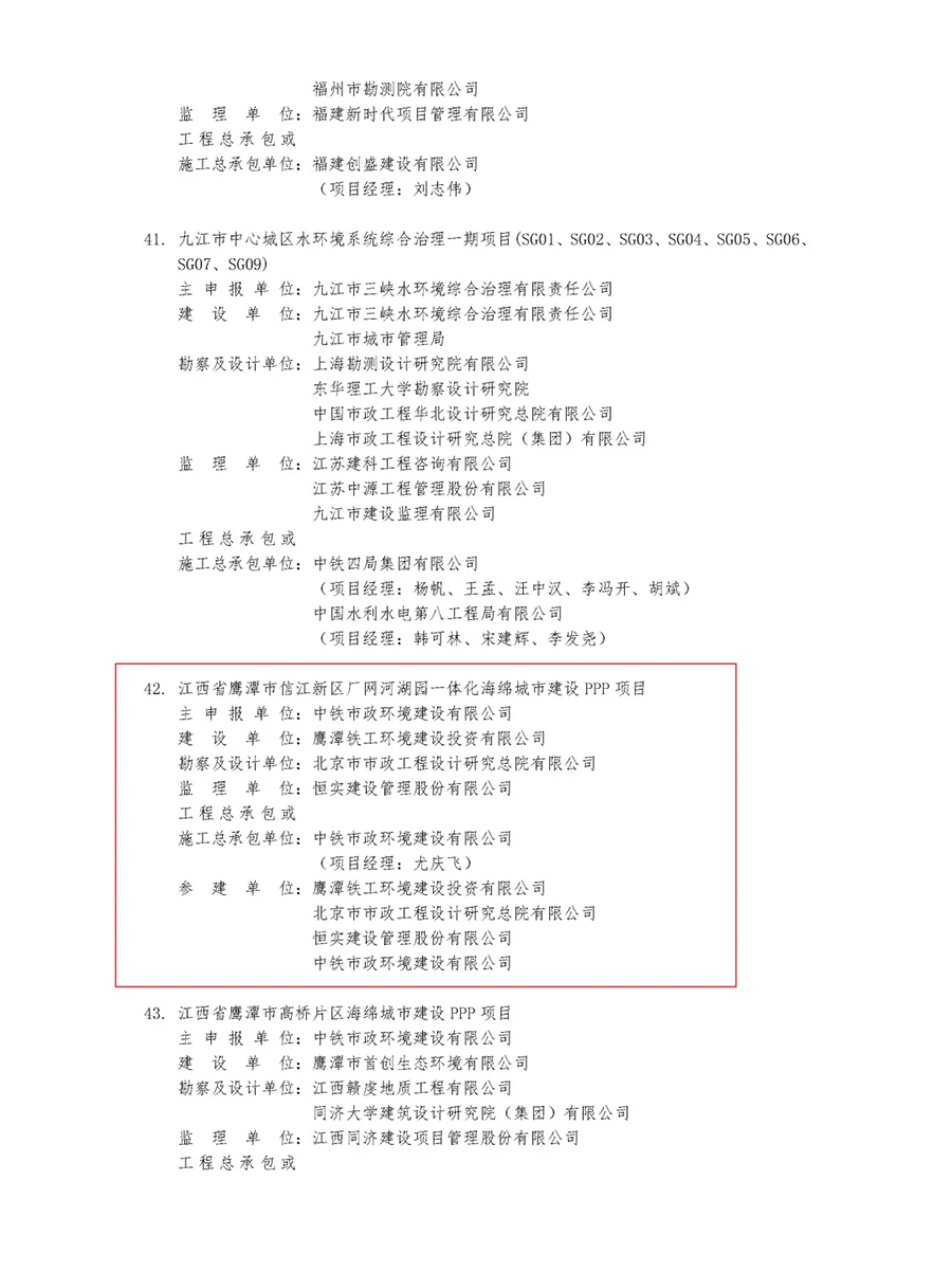 7月22日,中国市政工程协会发布了2025年度通过市政工程最高质量水平评价工程名单。其中,恒实建设管理股份有限公司监理的江西省鹰潭市信江新区厂网河湖园一体化海绵城市建设PPP项目荣获2025年度市政工程最高质量水平评价。