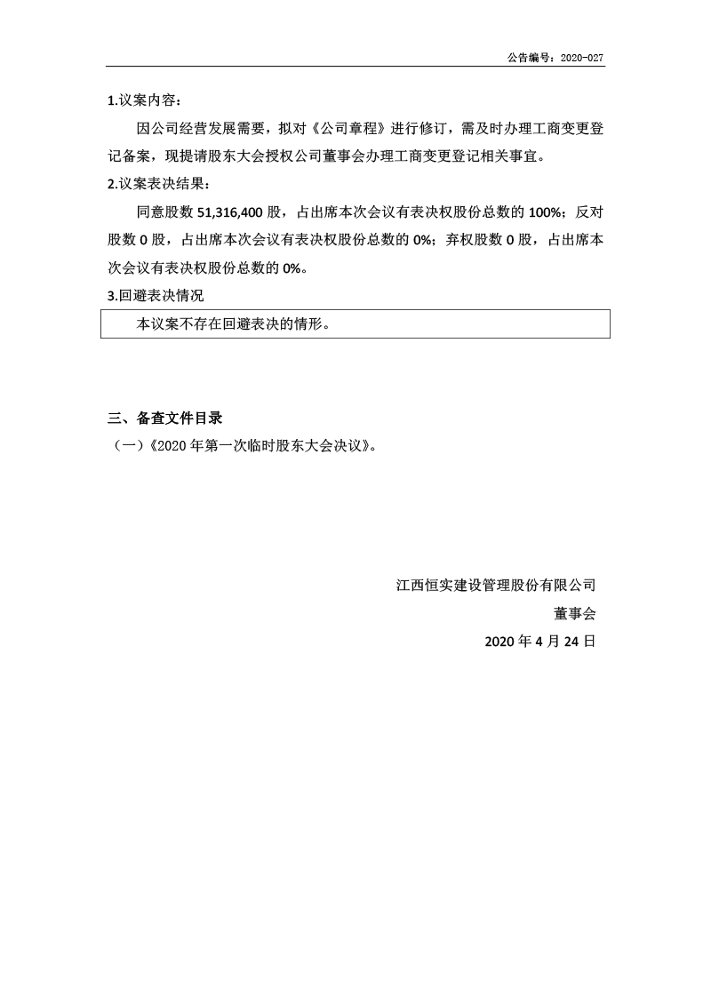 2020年第一次临时股东大会决议公告