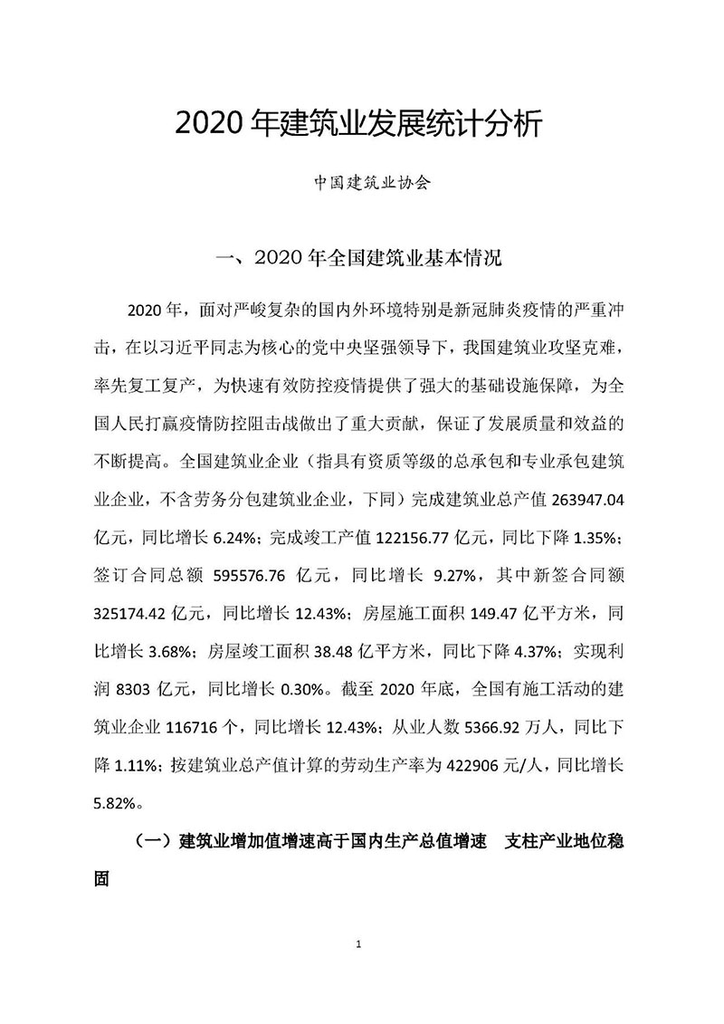 【行业关注】2020年建筑业发展统计分析